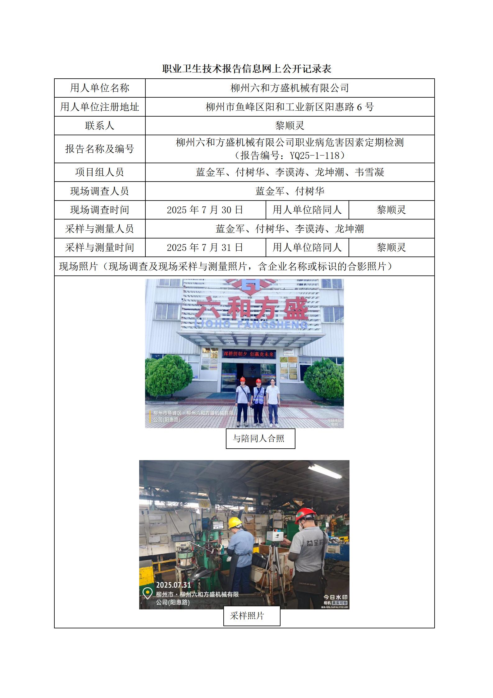 柳州六和方盛機械有限公司職業(yè)病危害因素定期檢測