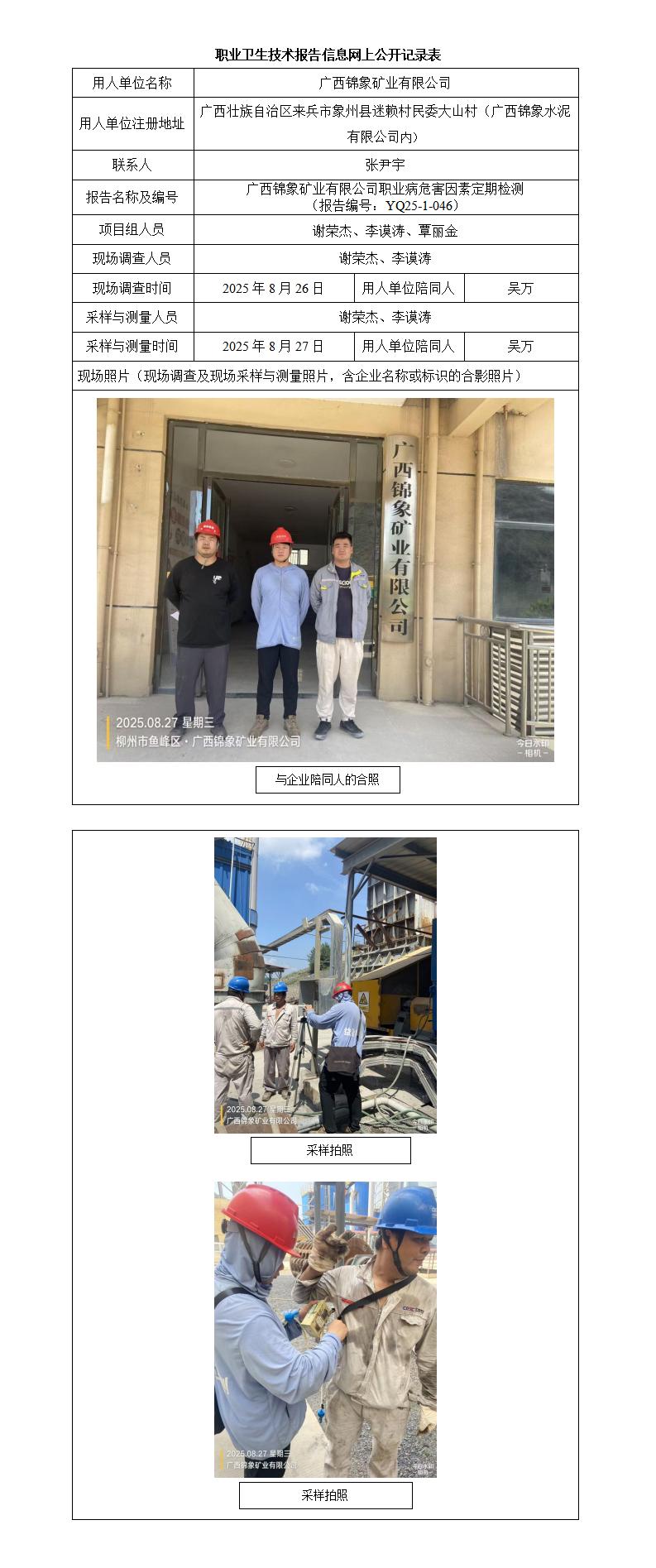 廣西錦象礦業(yè)有限公司職業(yè)病危害因素定期檢測(cè)