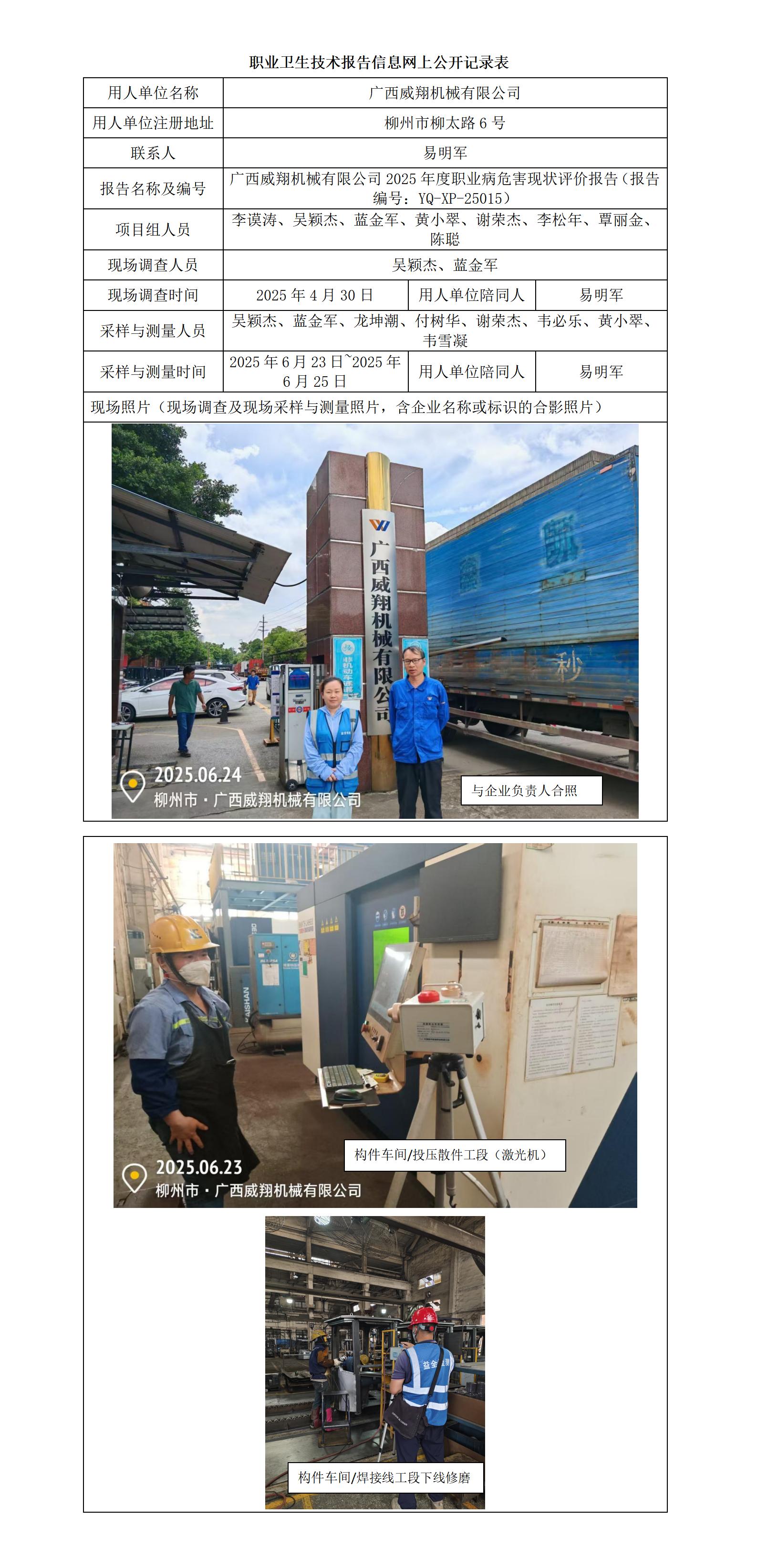 廣西威翔機(jī)械有限公司2025年度職業(yè)病危害現(xiàn)狀評(píng)價(jià)報(bào)告
